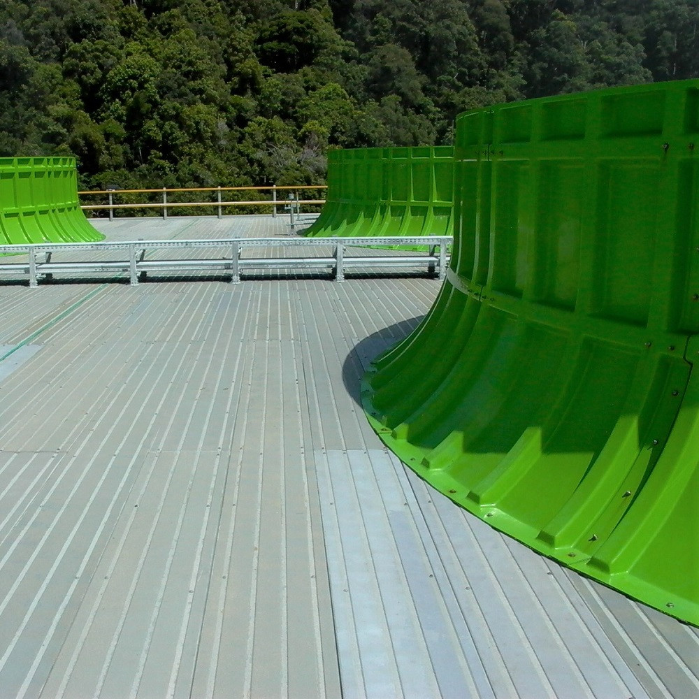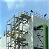 Na chladících věží při elektrárnách se kompozity používají pro zhotovení celé vnitřní konstrukce nebo na vnější obvodový a střešní plášť