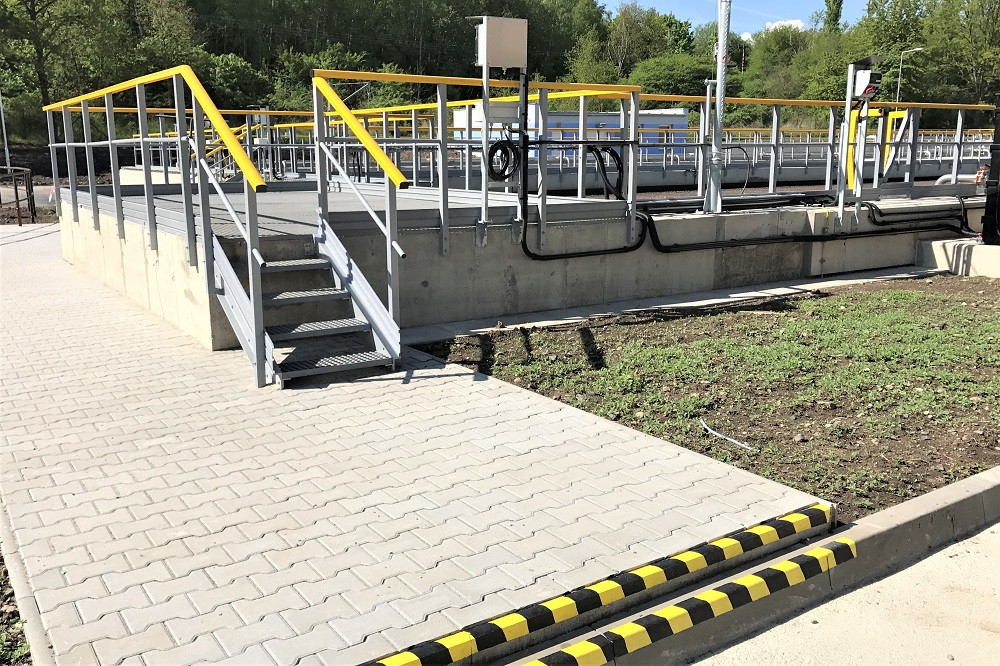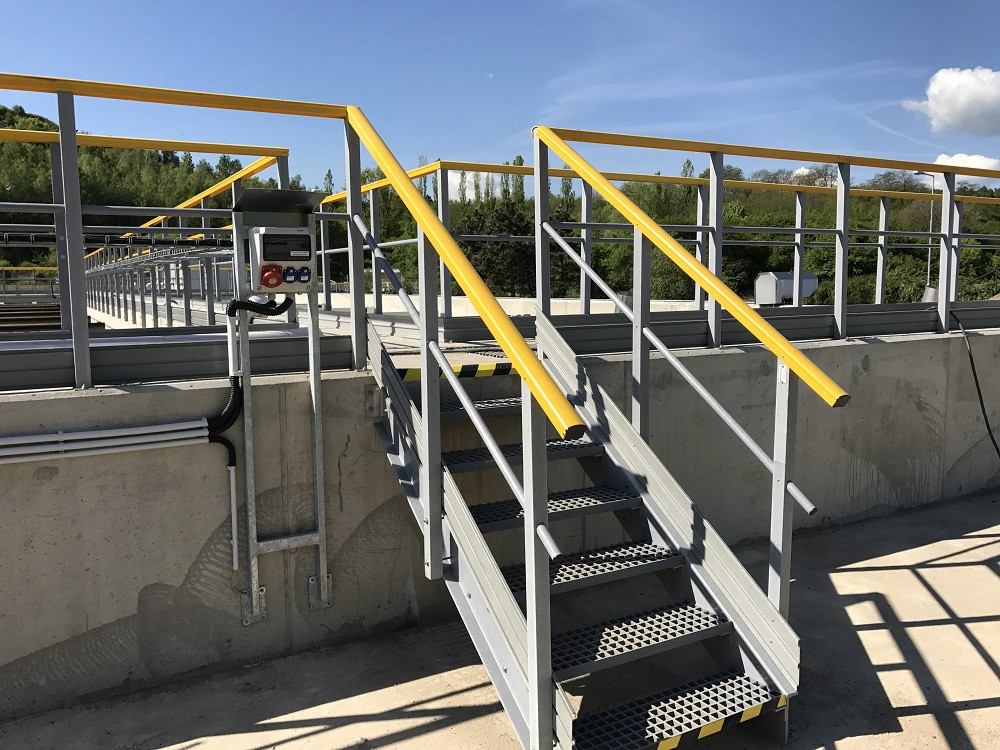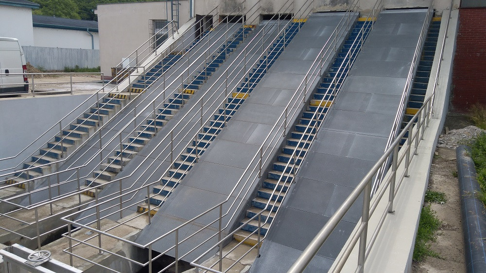 Kompozitní lávky, žebříky, přístupová schodiště, plné kryty, pochozí protiskluzové rošty.