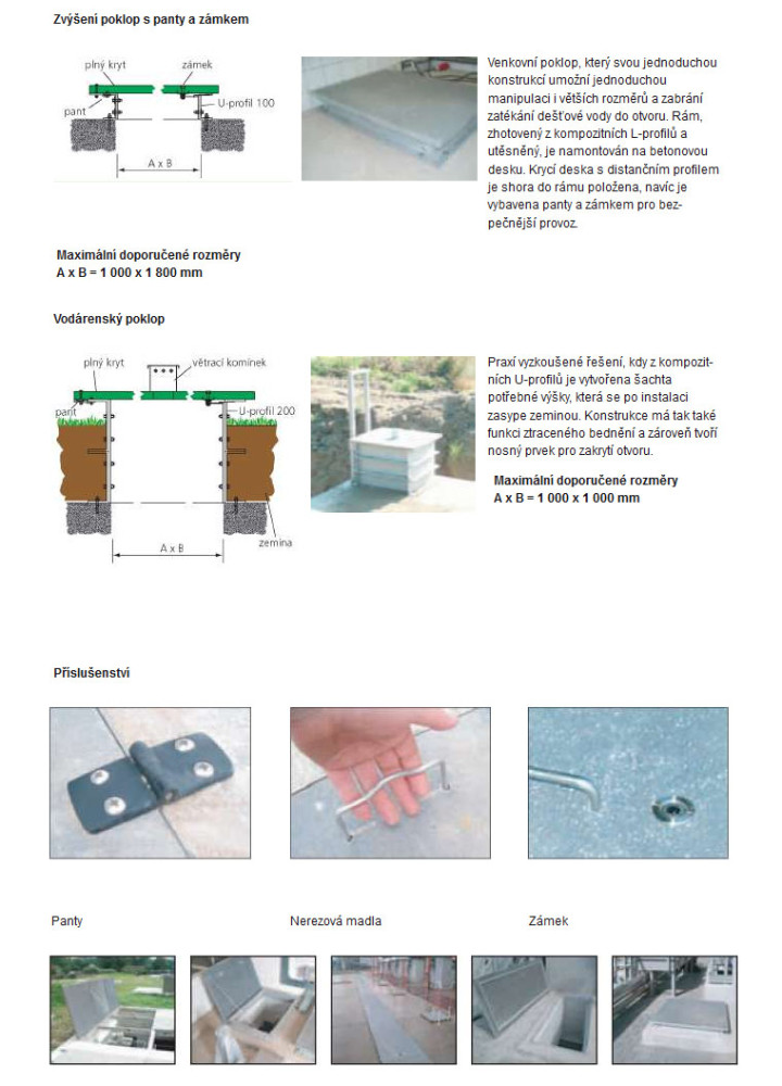 Jednoduše efektivní šachtové poklopy, vodárenské, vyvýšené, atypické i pro zakrytí dlouhých technologických kanálků a vedení