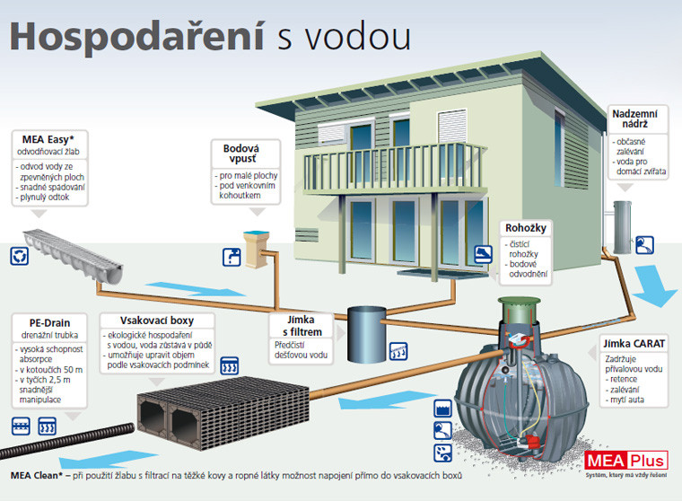 MEA CARAT je systém pro využití dešťové vody, podzemní a nadzemní nádrže a vsakovací systémy. Podívejte se na širokou nabídku nádrží, ze které si jistě vyberete tu správnou variantu pro Vaše využití.