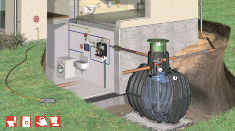 Komfortní řešení CARAT pro využití dešťové vody pro domovní i zahradní využití.