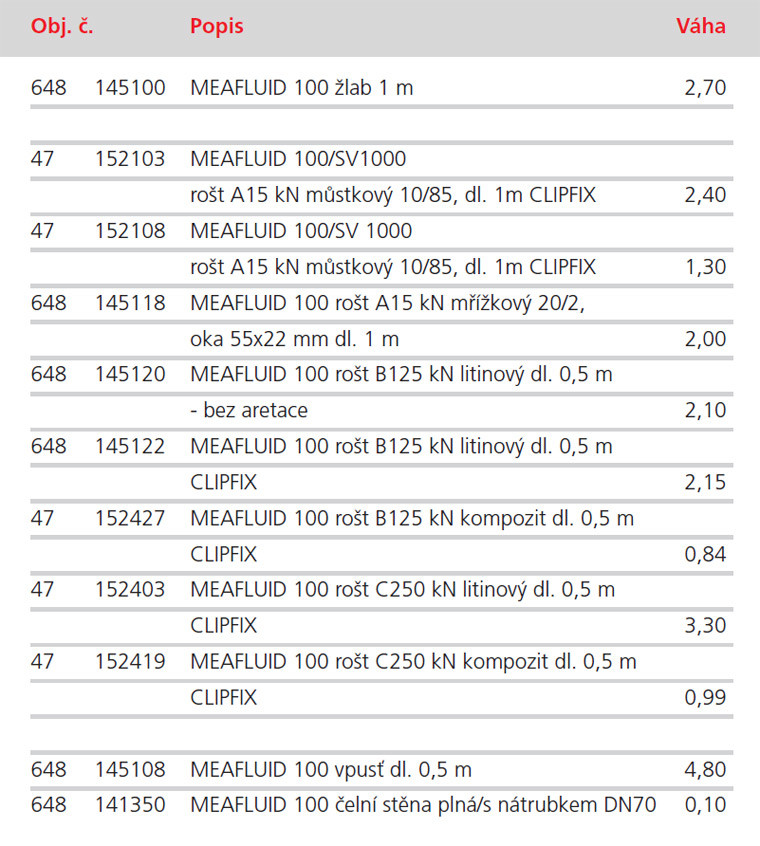 MEA FLUID 100 kompozitní žlab z SMC se širokou škálou roštů