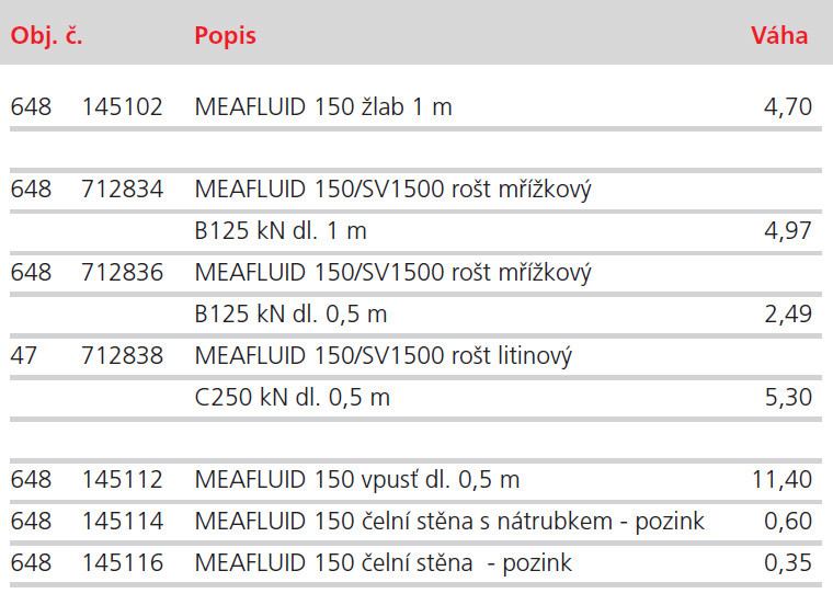 MEA FLUID 150 kompozitní žlab z SMC se širokou škálou roštů