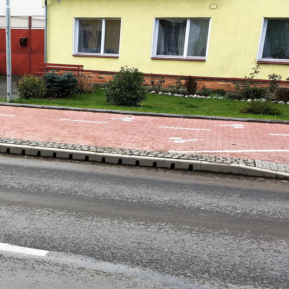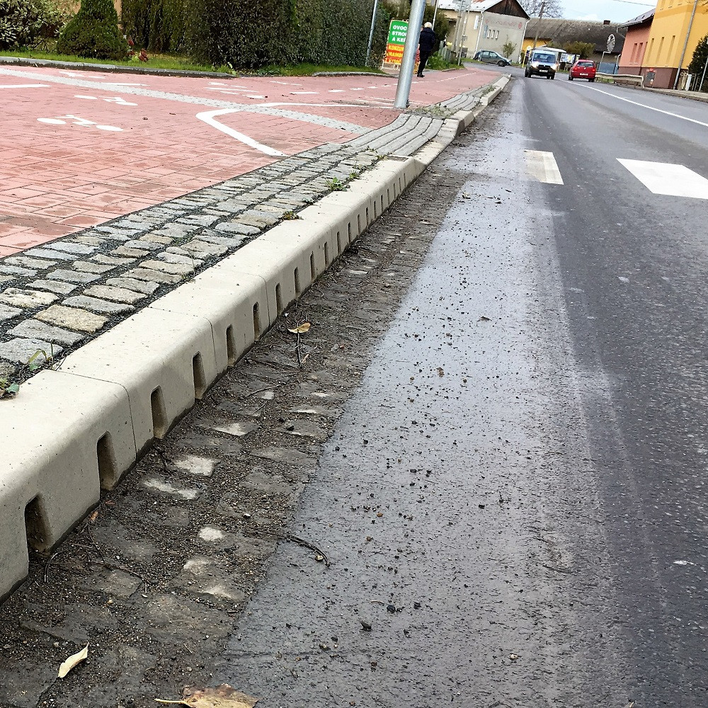 Obrubníkové odvodnění z polymerického betonu nezasahuje do vozovky a řeší odvodnění při malých spádech v městské aglomeraci i na rychlostních komunikací. Bezpečné pro cyklisty, komfortní pro chodce.