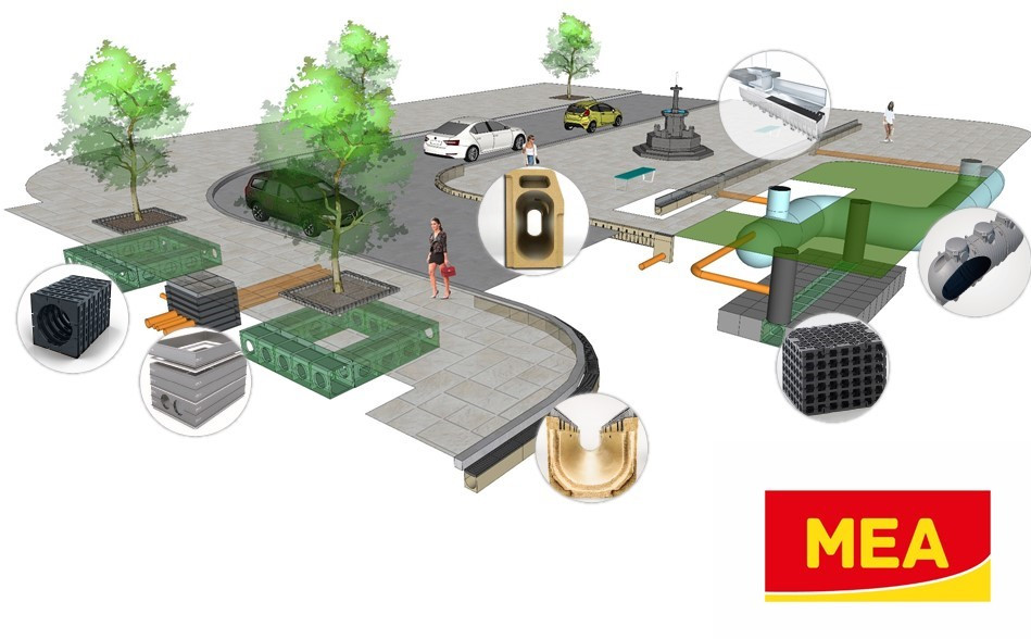 Drenážní systémy pro odvodnění komunikací a budov, drenážní trubky a příslušenství.