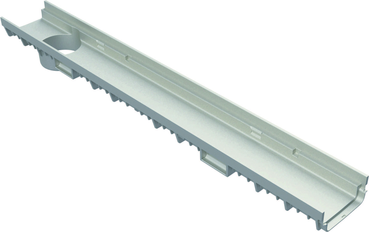 Žlaby MEARIN PLUS 100/F se sníženou výškou pouze 55 mm umožňují spolehlivě odvodnit plochy s nízkou konstrukční výškou jako jsou terasy, podzemní i nadzemní parkoviště nebo jakékoliv plochy, kde je nevhodné použít hlubší řešení. Zatížení je dle volby roštů v rozmězí A15 až D400 kN.