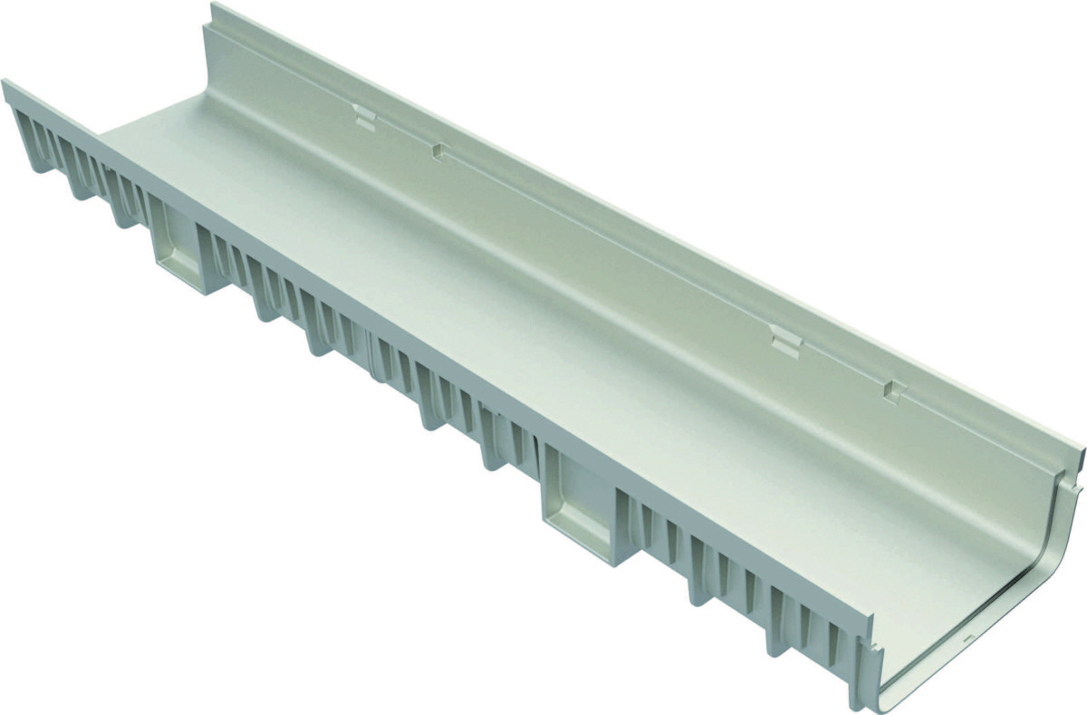 Žlaby MEARIN PLUS 100/F se sníženou výškou pouze 100 mm umožňují spolehlivě odvodnit plochy s nízkou konstrukční výškou jako jsou terasy, podzemní i nadzemní parkoviště nebo jakékoliv plochy, kde je nevhodné použít hlubší řešení. Zatížení je dle volby roštů v rozmězí A15 až D400 kN.