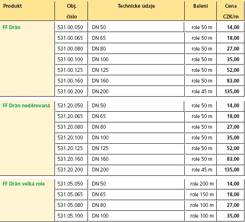 Drenážní trubky a příslušenství - Systém FF-Drän, Kokofil, Multifil.