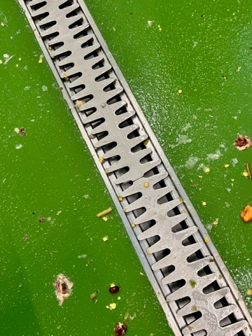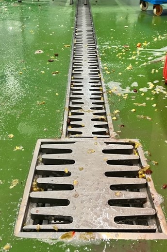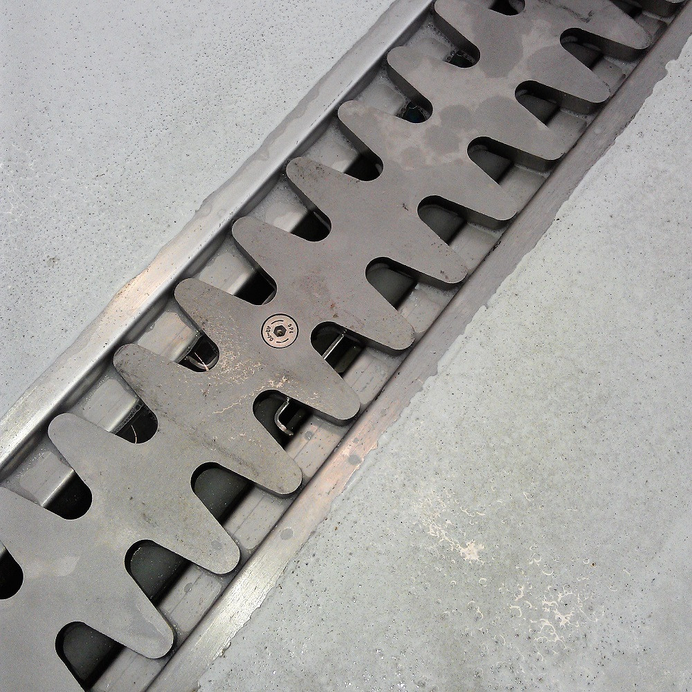 Hygienické žlaby CIP s masivním roštem v sobě spojují výhody štěrbinového žlabu s kompaktním průtočným profilem a snadnou čistitelnost. Masivní rošt tloušťky 12 mm má vysokou odolnost vůči deformaci a zároveň splňuje vysoké nároky na čistění a hygienu. Rošt bez vnějšího rámu se nedotýká hran žlabu a nevzniká zde prostor pro tvorbu bakterií.