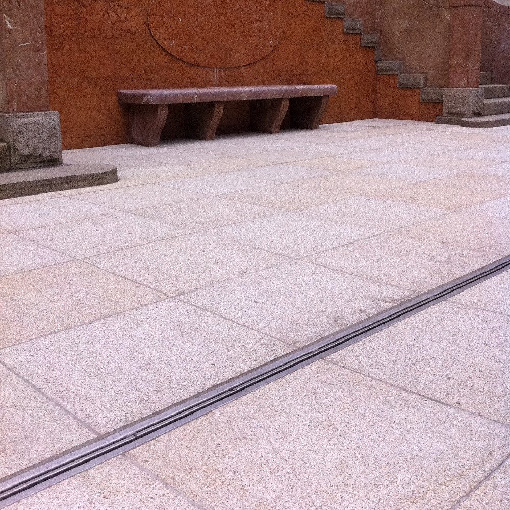 Nerezové žlaby v rozdílných provedení se používají také na odvodnění teras, kašen, fontán, nádvoří, střech, náměstí... Díky variabilitě nerezové výroby lze navrhnout žlab pro téměř jakýkoliv prostor.