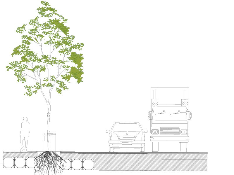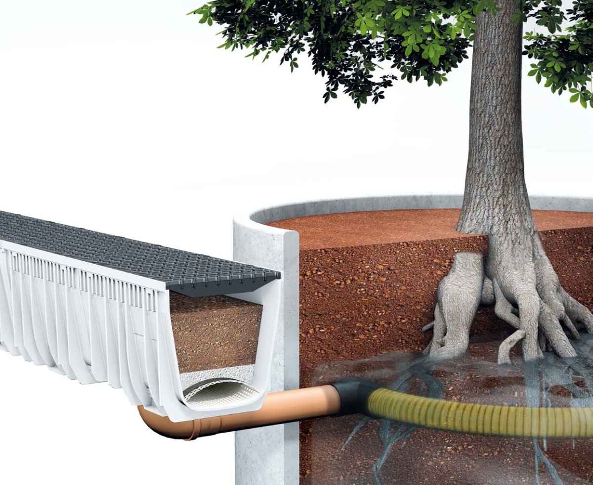 Vysoce kapacitní boxy jsou navrženy tak, aby mohly absorbovat velké množství zeminy a poskytovat kořenům stromů dostatek okysličení. Kořenový systém se tak může volně rozrůstat všemi směry. Hlavní kořenové prameny rostou bez překážek v podzemních kanálcích, které mají průměr 500 milimetrů. Tlaková síla vozovky nebo jiných ploch, jako jsou parkoviště a pěší zóny, je absorbována vertikálně i horizontálně celým systémem a bezpečně přenášena do spodních vrstev. Tato ochrana umožňuje rozvoj kořenového systému zcela přirozeně. Systém také vytváří vodní zásobárnu, která je velice efektivní z dlouhodobého hlediska. Ochranné boxy nenahrazují podkladní vrstvy, ale umožňují okysličení zeminy a zabraňují jejímu zhutňování vlivem tlaků z vozovky.