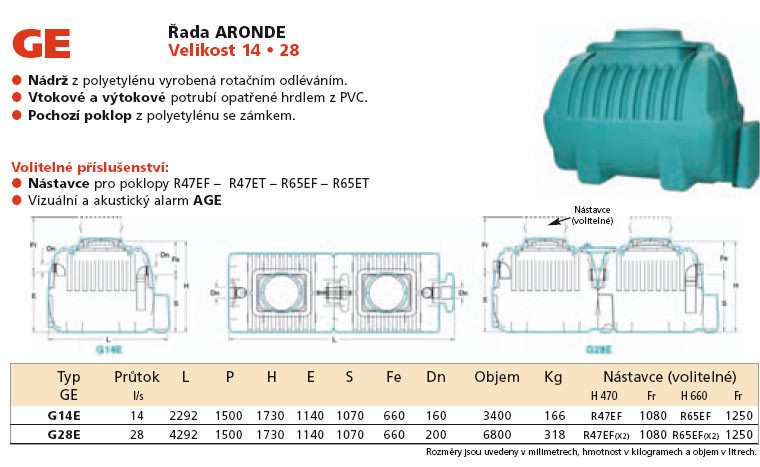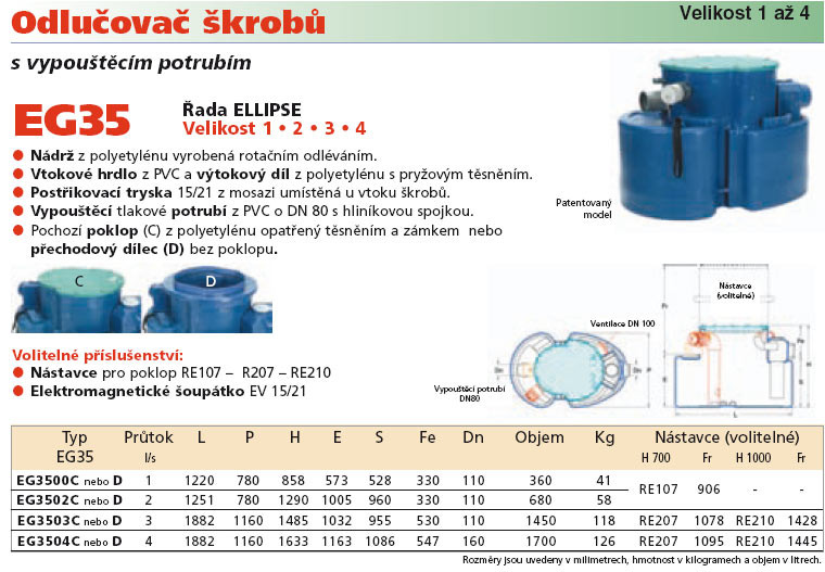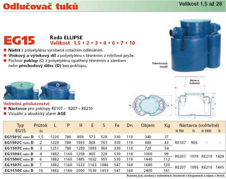 Odlučovače tuků a škrobů s vypouštěcím potrubím