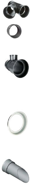 | Víceúčelová trubka z PE-HD v sendvičové konstrukci (vně vlnitá, uvnitř hladká), s vodotěsným hrdlovým spojením vč. těsnicího kroužku. Barva černá, s bílým označením vrcholu. |
