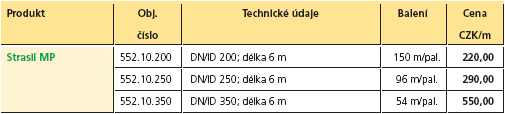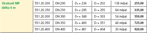 | Víceúčelová trubka z PE-HD. Dříve dodávána pod obchodním označením Strabusil SN 8 (MP) - V sendvičové konstrukci (vně vlnitá, uvnitř hladká) s vodotěsným hrdlovým spojením včetně profilového těsnicího kroužku. - Vně černá, uvnitř šedá. - Mimořádně zatížitelná (SN 8 ČSN EN 9969). - Druhy štěrbin podle DIN 4262-1 a NF P 16351. |