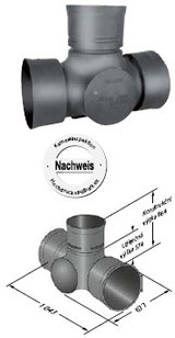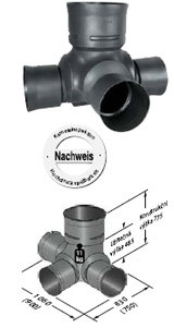 | Vnitřní průměr základního tělesa > 600 mm. Proplachovací a kontrolní šachta z PE-HD; barva černá. 180° průchozí šachta s 1 přítokem a 1 odtokem DN 400. Odolná proti UV záření; hmotnost cca 12 kg. Odolná proti kyselinám, louhům, olejům, tukům a cementu dle DIN 8075, s integrovanou rezervou pro případné sedání nástavné trubky. Vodotěsná, podle DIN 4262-1. Lze zabudovat do dopravních ploch. |
