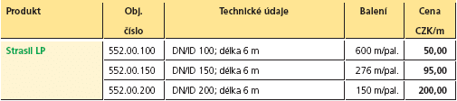 | Částečně perforovaná drenážní trubka z PE-HD. Dříve dodávána pod obchodním označením Strabusil SN 8 (LP) - V sendvičové konstrukci (vně vlnitá, uvnitř hladká) s volně přiloženou spojkou. - Vně černá, uvnitř šedá, s bílým označením vrcholu. - Mimořádně zatížitelná (SN 8 ČSN EN 9969). - Druhy štěrbin podle DIN 4262-1 a NF P 16351. |