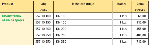 ![]() Lze dodat ve jmenovitých světlostech DN 250 / 300 / 350 / 400 (na dotaz). |