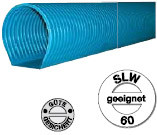 | Částečně perforovaná drenážní trubka, příčně vlnitá, s příčnou perforací 220°, tunelového průřezu, s hladkým dnem a se spojkou. Barva modrá. |
