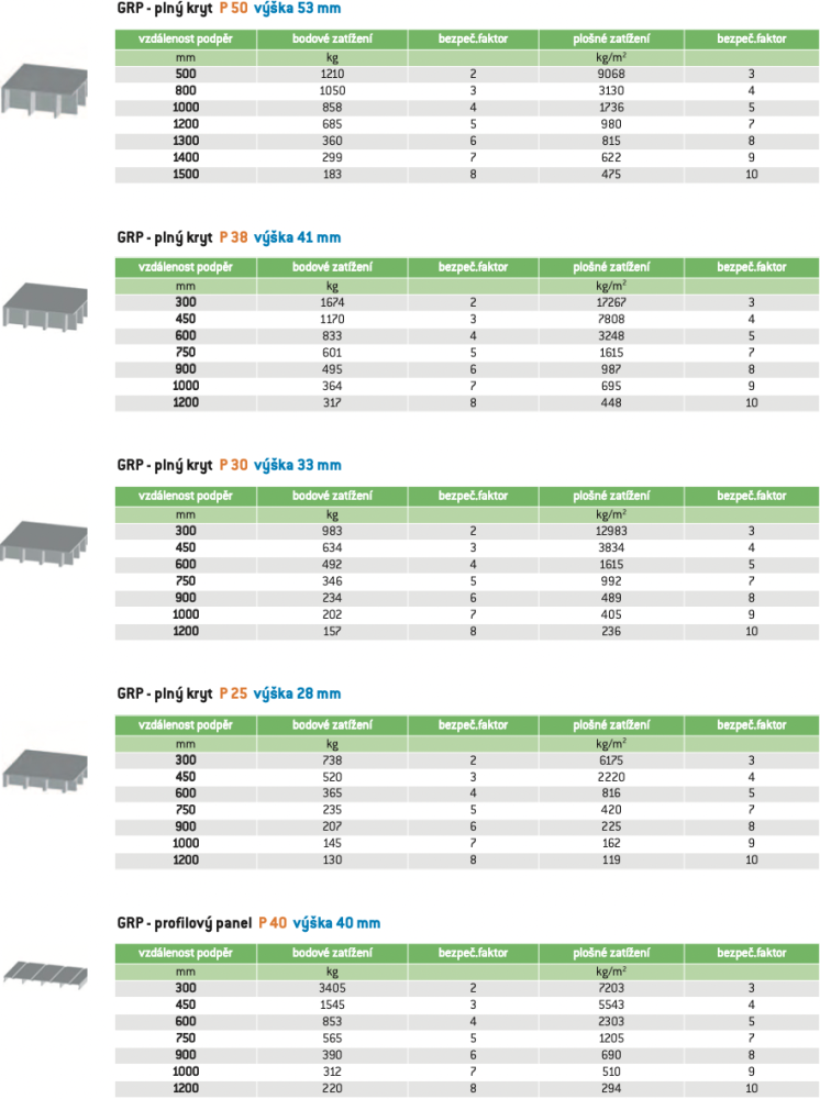Vnitřní žebrová konstrukce pevně spojena s krycí deskou – oboustranně nebo jednostranně se používá na zakrytí podélných žlabů, vstupů, na lávky. Oboustranné plné zakrytí zvyšuje nosnost. Protiskluzová vrstva je bezpečná a zvyšuje také odolnost krytů vůči UV záření nebo opotřebení. Panely PA40 jsou vhodné na zakrytí dlouhých technologických žlabů.