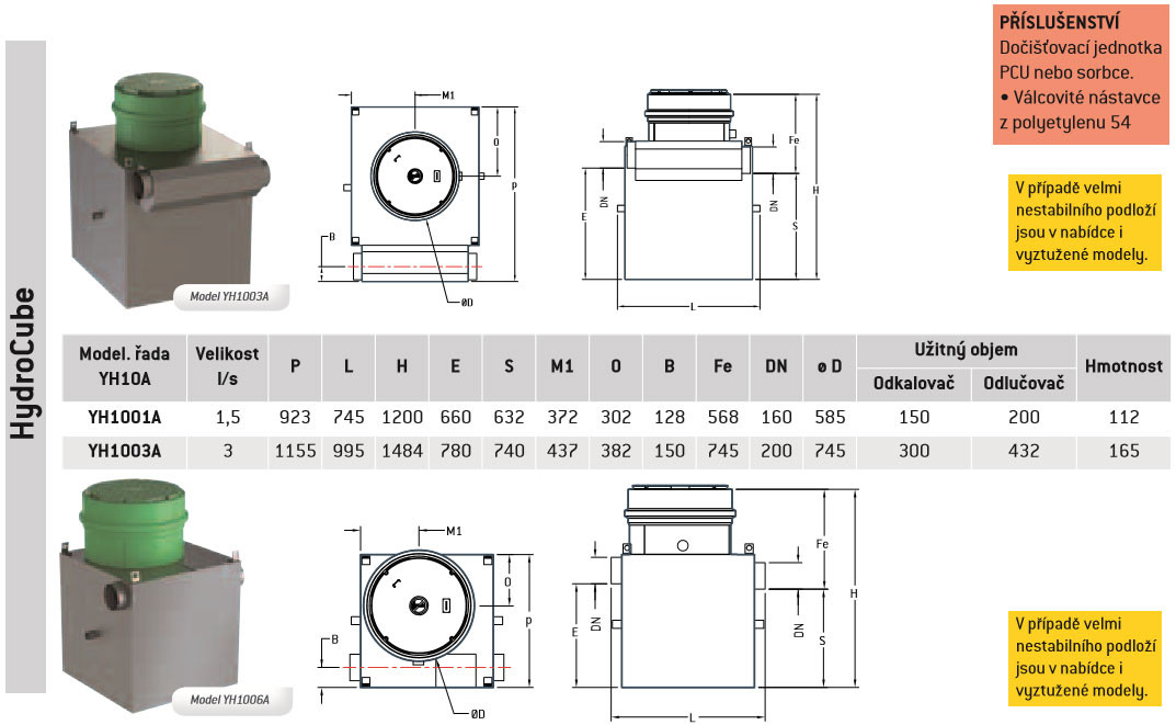 Kryt z polyetylenu. Modul kónické příčky – a zcela vyjímatelného koalescenčního filtru (CCF). Třída I Průtok < 5 mg/l Velikost 3 až 35 l/s