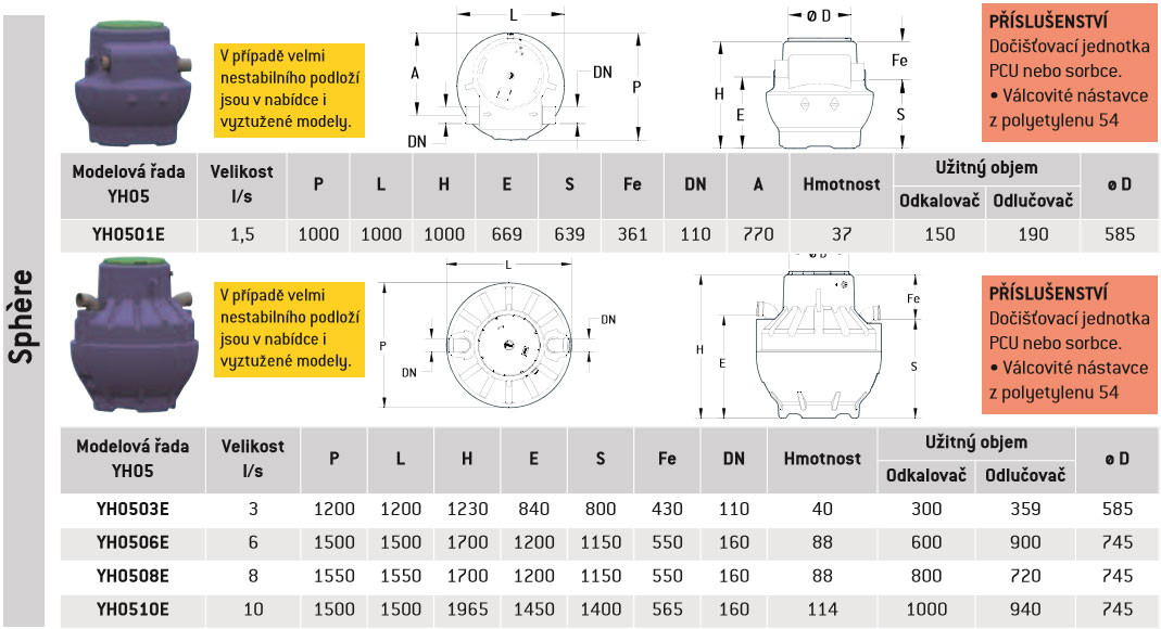 Péče o dešťovou vodu: Výrobky a systémová řešení - Odlučovače ropných látek z polyesteru nebo oceli, odlučovače tuků a škrobů, regulátory a stavidla.