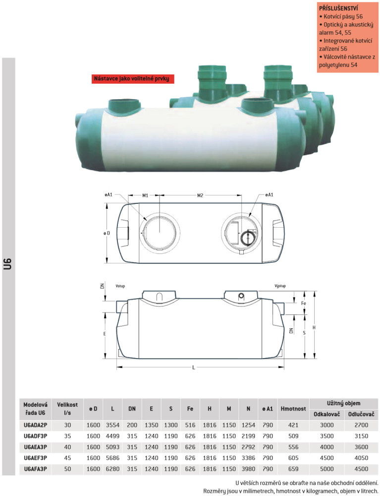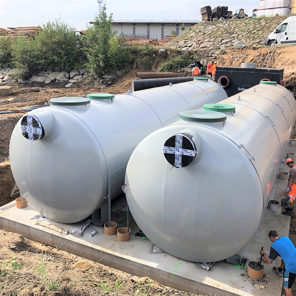 Péče o dešťovou vodu: Výrobky a systémová řešení - Odlučovače ropných látek z polyesteru nebo oceli, odlučovače tuků a škrobů, regulátory a stavidla.