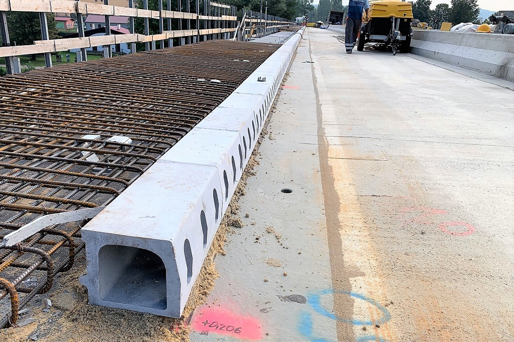 Obrubníkové odvodnění MEA DECK na mostě ve Štětí