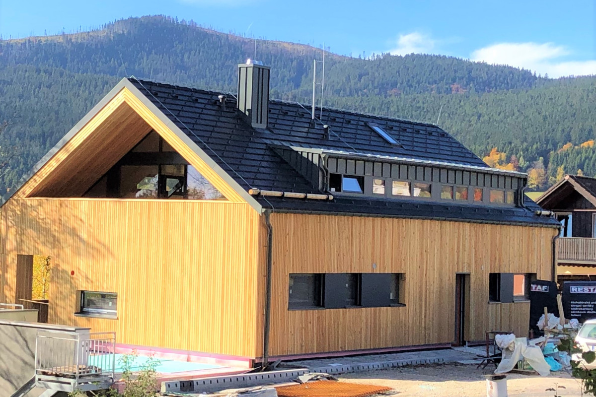 Při výstavbě rodinného domu ve Špičáku na Šumavě, která právě probíhá, se řešilo odvodnění zpevněných ploch včetně vsakování zpět do půdy. Než je voda svedena do vsakovací galerie a předčištěna v čistící šachtě, je voda zachycena do obrubníkového odvodnění podél celé délky parkoviště. Obrubník má tak dvojitou funkci. Ohraničuje parkovací plochu a zároveň spolehlivě odvádí dešťovou vodu.