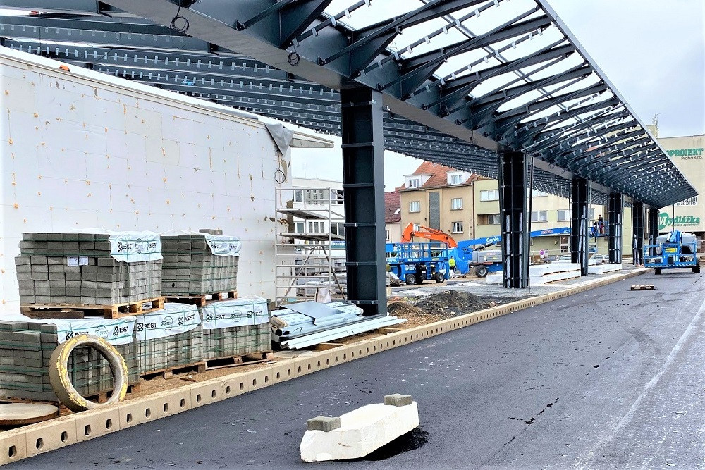 Výstavba autobusového termínálu v přímém sousedství železničního nádraží si vyžádala netradiční řešení. Pro odvodnění autobusového stání je použito obrubníkové odvodnění MEA BUS KERB se zvýšenou výškou 18 cm a protiskluzovou úpravou nášlapné hrany. Systém tak zajišťuje prostor zastávek bez kaluží a bezpečný nástup a výstup. Součástí odvodnění terminálu jsou také monolitické žlaby DM1500 a v podchodech žlaby MEA s litinovým roštem. Na přiložené fotografii jsou vidět obrubníkové žlaby MEA BUS KERB ještě před položením finální asfaltové vrstvy. S otevřením termínálu se počítá ještě v letošním roce 2020.