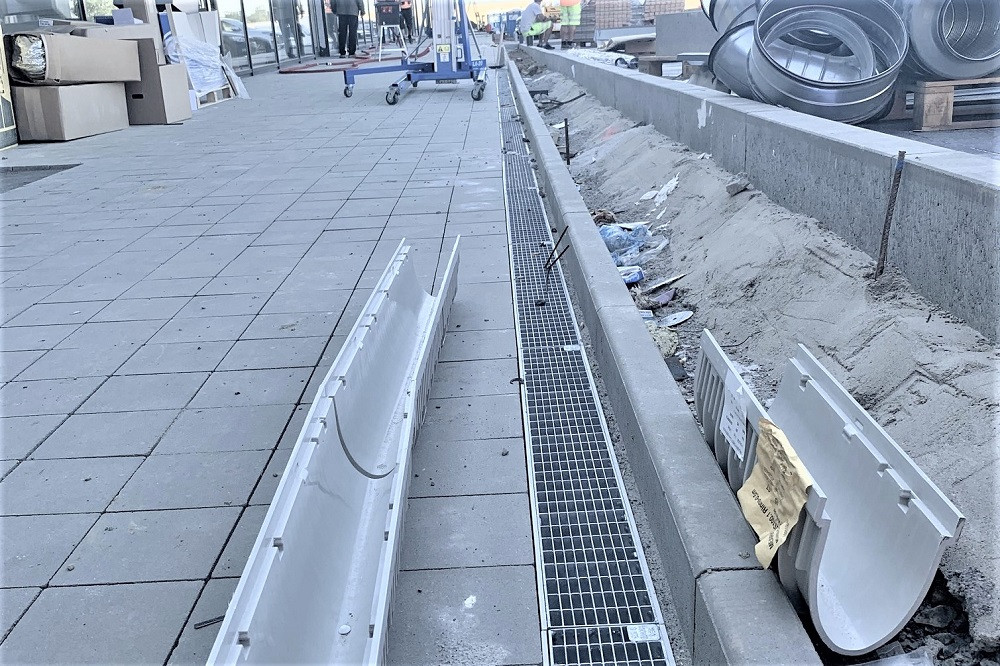 Obchodní centrum v Unhošti je odvodněno žlaby MEARIN PLUS 200