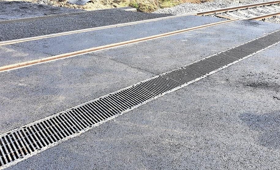 Železniční přejezdy odvodňovány žlaby MEA DRAIN