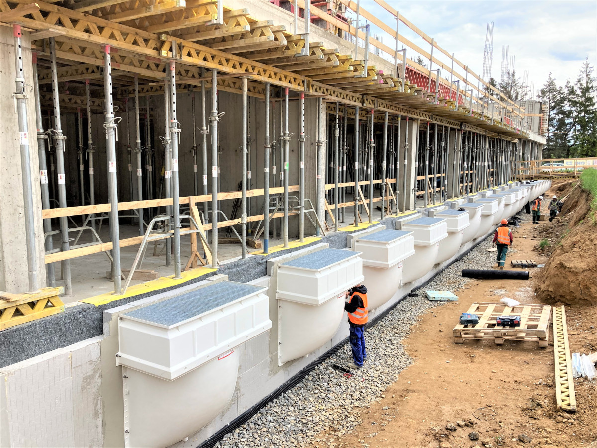 Anglické dvorky MEA MULTINORM 3v1 na stavbě budovy Krajského úřadu Vysočina