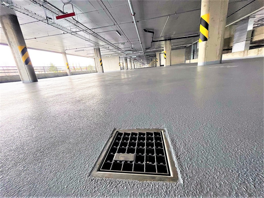 Ne vždy je ovšem vhodné použít liniové systémy PG. Proto byl na parkovišti na Černém Mostě zvolen systém bodového nerezového odvodnění ve všech podlažích. Podlahy jsou vyspádovány směrem ke vpustím, ze kterých jsou úkapové vody svedeny systémem potrubí pod stropem.