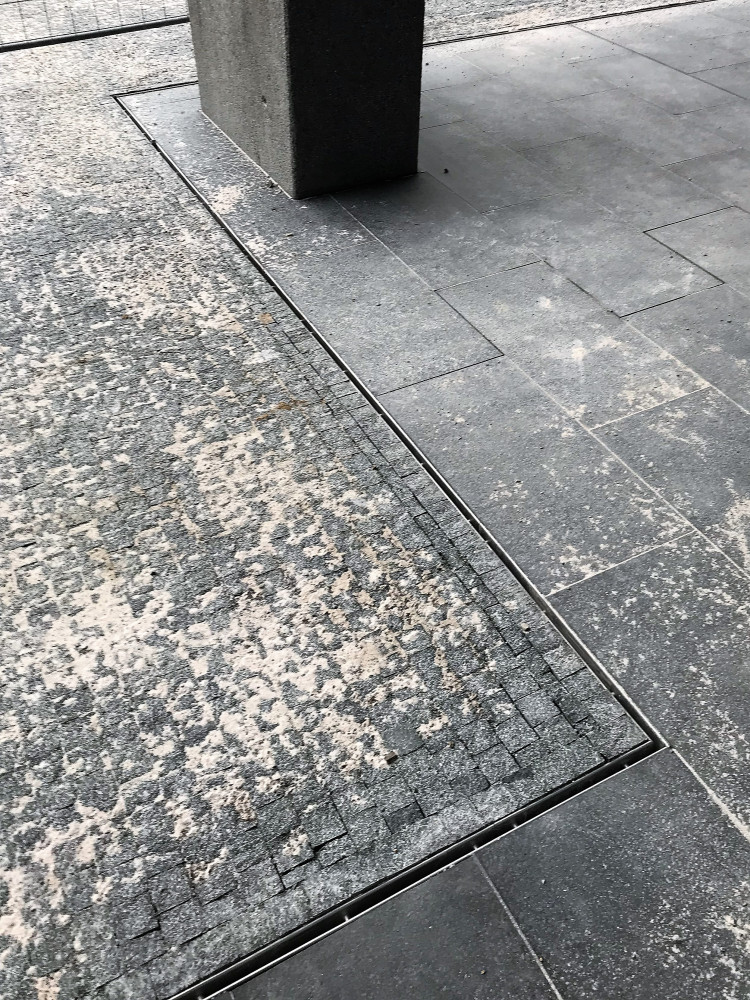 odvod dešťové vody ze zpevněných ploch je zajištěno podélnými, převážně štěrbinovými, žlaby. Kombinace MEA nerezových štěrbinových krytů TSH a spodních žlabů z polymerbetonu TL1000 zajišťuje dostatečnou kapacitu a zároveň na povrchu vyniká estetickým provedením při spojení dvou různých povrchů. Na celou akci byly dodány také ocelové obruby, polymerické žlaby s litinový roštem a nerezové vany do vnitřního odvodnění.