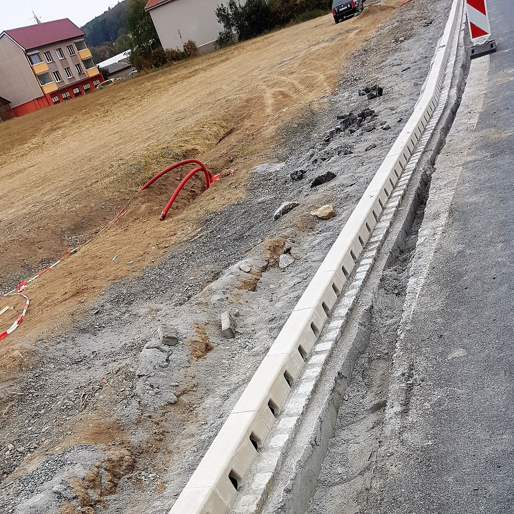 Při výstavbě  cyklostezky vedené souběžně se silnicí Klatovy-Sobětice bylo v délce 700 metrů navrženo obrubníkové odvodnění MEA KERB. Obrubníkové odvodnění je výhodné použít v místech s minimálním spádem, nebo v místech, kde se spád nepravidelně mění. Systém MEA KERB nezasahuje do vozovky ani v krajnici, voda odtéká bočními otvory do obrubníku, kde je bezpečně odváděna do kanalizace. Nevznikají tak kaluže ani při nulovém spádu, do vozovky nezasahují žádné mříže nebo podélné štěrbiny a je to tak bezpečné  a komfortní pro cyklisty i chodce. Dodávka a instalace probíhala v průběhu srpna přímo z našeho výrobního závodu v Plzni.