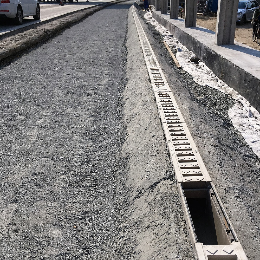 Téměř 200 metrů odvodnění se právě instaluje na dálnici D46. Odvodnění je umístěno podél protihlukové stěny u Olšan na Prostějovsku. Součástí dodávky byl také test na odolnost proti CHRL v laboratoři ŘSD. Žlaby systému DM 1000-1500-2000 jsou navržené pro zatížení až F900 kN a jsou určené také pro vysokorychlostní komunikace.