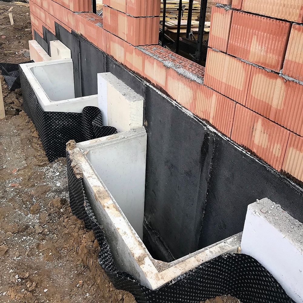Právě probíhá instalace betonových prefabrikovaných anglických dvorků MEAVECTOR na Praze 5