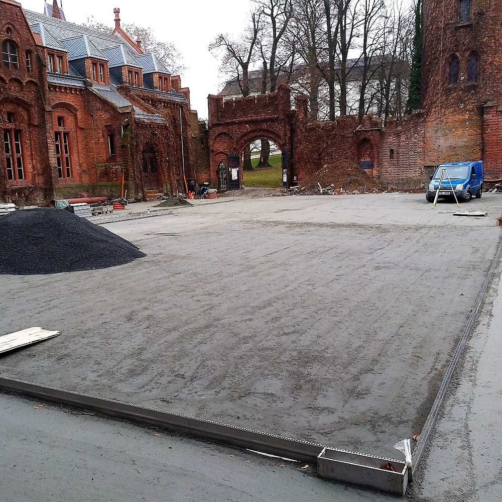 Štěrbinové odvodnění MEA TOPSLOT pro odvodnění nádvoří při rekonstrukci zámku Hradec nad Moravicí
