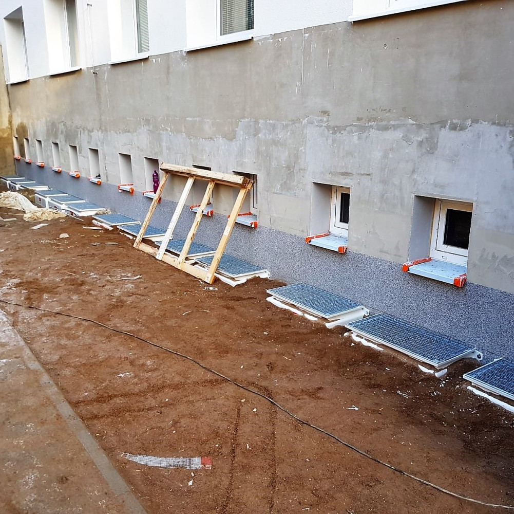 Při revitalizaci panelových domů v Kozinově ulici v Domažlicích se muselo vyřešit i prosvětlení a odvětrání sklepních prostor. Zde bylo použito celkem 52 ks sklepních dvorků MEA MULTINORM, které umožňují prosvětlení i dostatečné provětrání díky své konstrukci a roštu. Krycí rošt navíc umožňuje i pojezd osobních aut.