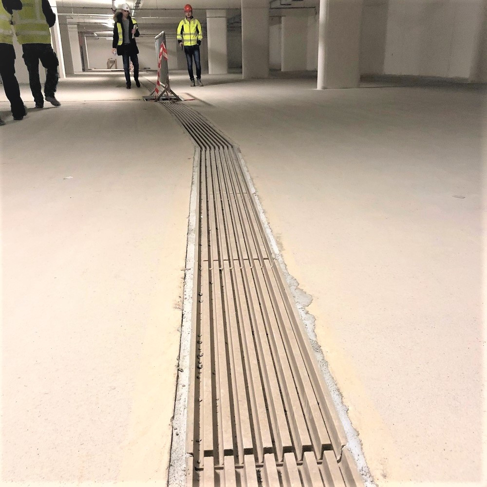 Při výstavbě bytových domů "Javorová čtvrť" na Praze 15 jsou jejich součástí také 3 podzemní podlaží garáží. Pro zachycení úkapů z aut po dešti nebo z tajícího sněhu jsou parkovací plochy odvodněny nízkými odpařovacími žlaby PG 3000 s výškou 50 mm  a v patrech s omezenou konstrukční výškou bylo možné použít systém výšky maximálně 30 mm. Zde se využil kompozitní typ PG1500 EVO, který tento požadavek splňoval. Případná úkapová voda, která se neodpaří, je svedena z horních pater do nejnižšího podlaží, kde bude zachycena v úkapové jímce. Celková délka odvodnění je cca. 250 bm.