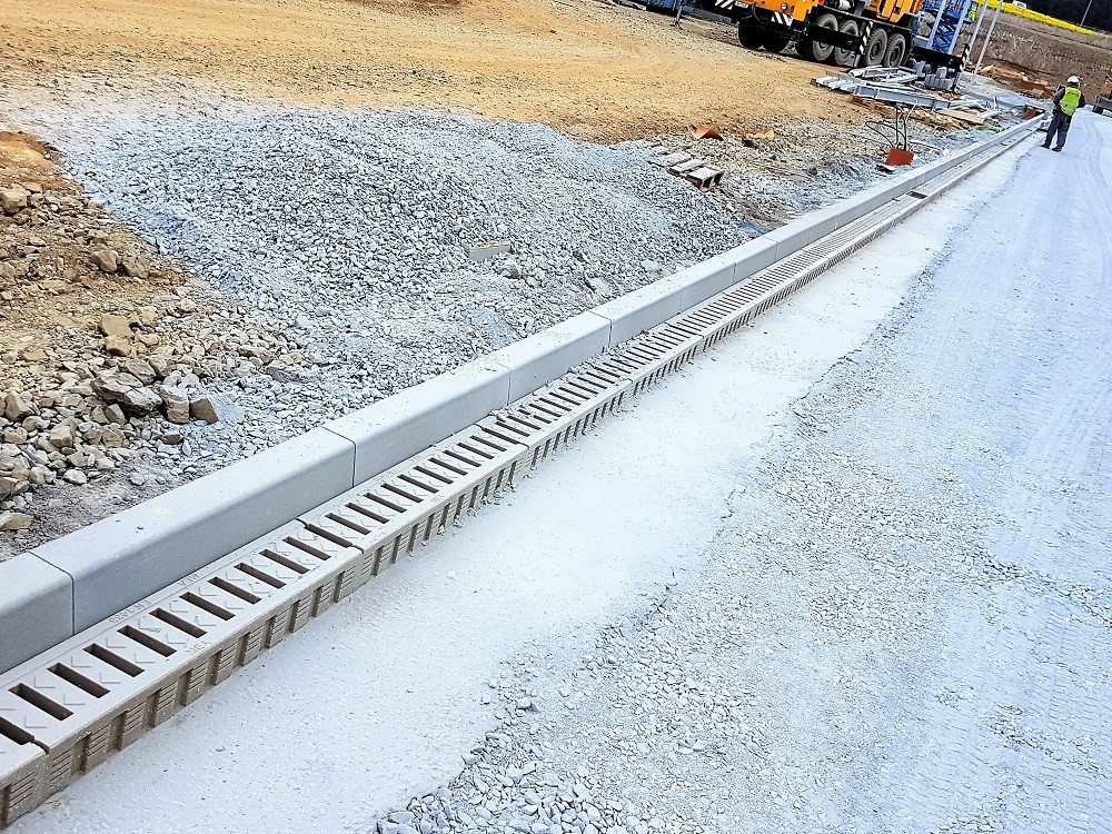 Monolitické žlaby MEA DM1500 pro odvodnění ploch v areálu v Holýšově