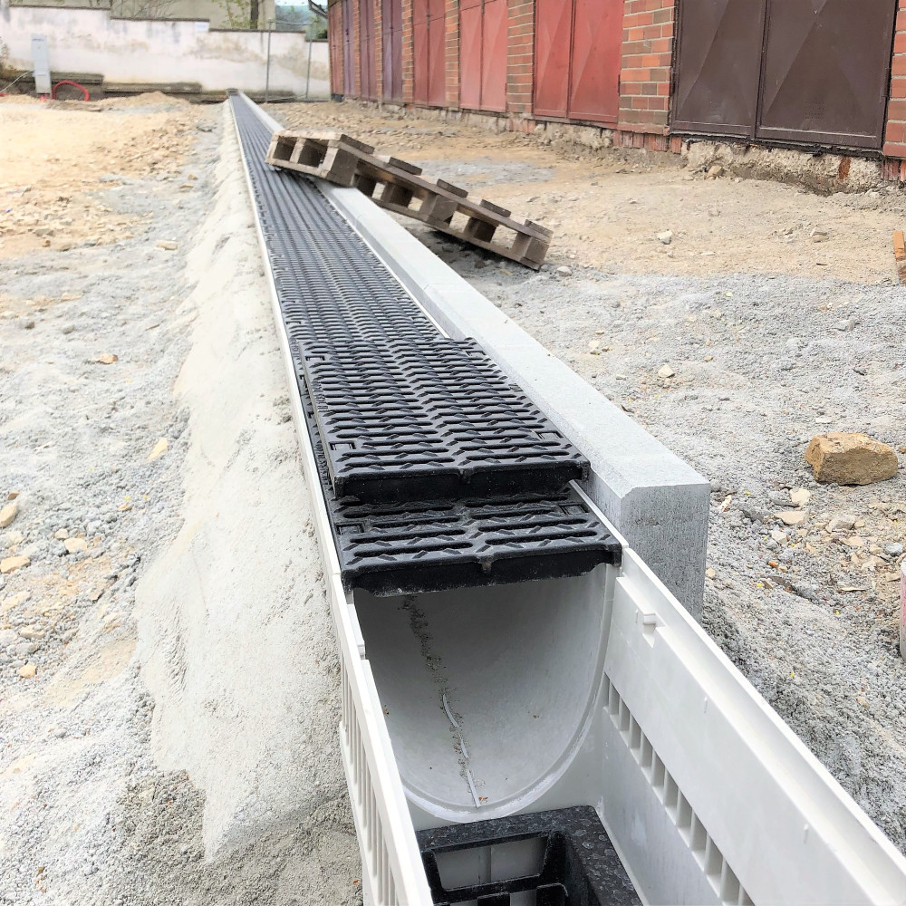 Žlaby MEARIN PLUS 200 odvádějí dešťovou vodu z parkoviště v Písku