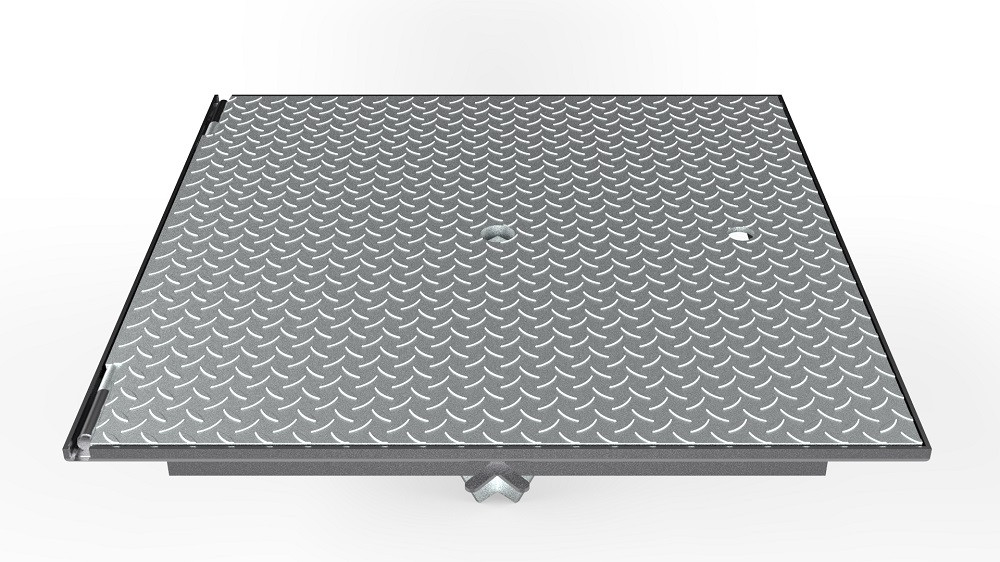 Uzavírací šachtové poklopy s protiskluzovým povrchem. Žebrované plechy jsou vybaveny centrálním zámkem a pantem, který umožňuje rychlé a pevné uzamčení na klíč.
