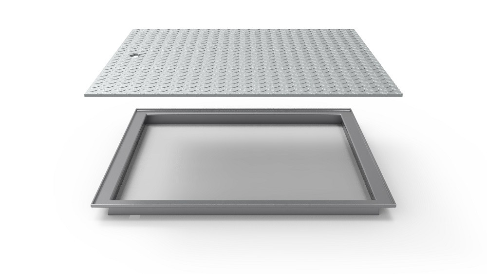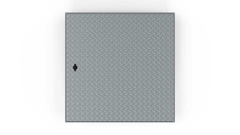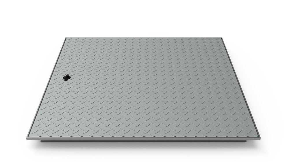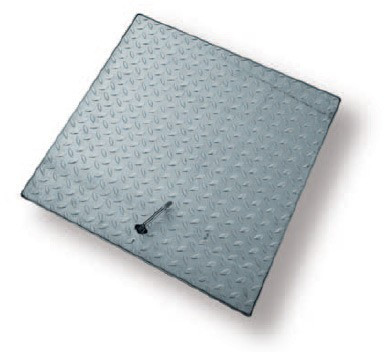 Uzavírací šachtové poklopy s protiskluzovým povrchem. Žebrované plechy jsou vybaveny zámkem a kováním, které umožňuje pevné uzamčení na klíč.
