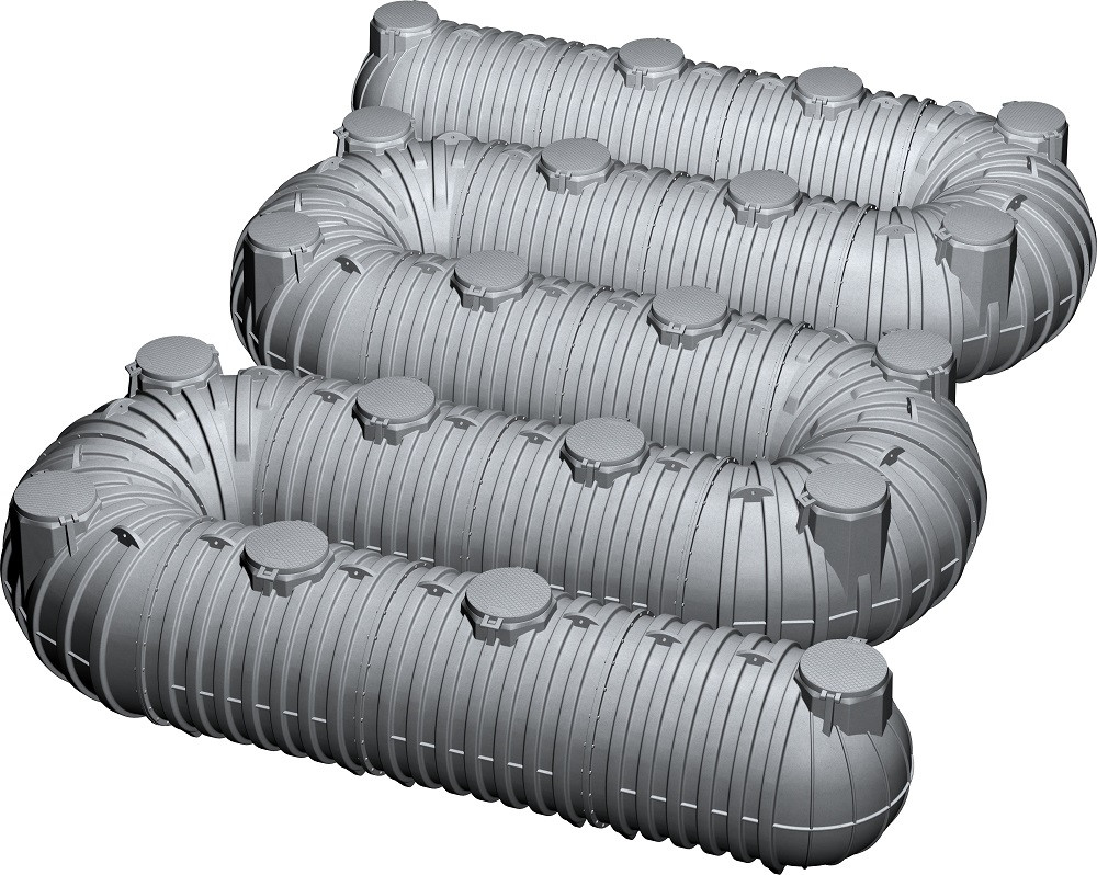 Široké variabilní možnosti, šířka 2,1 m. Průchozí vnitřní rozměry jsou dostatečně rozměrné pro revize a údržbu. Tvarově a objemově lze navrhnout nádrž podle možností volného pozemku a získat maximální kapacitní objem.