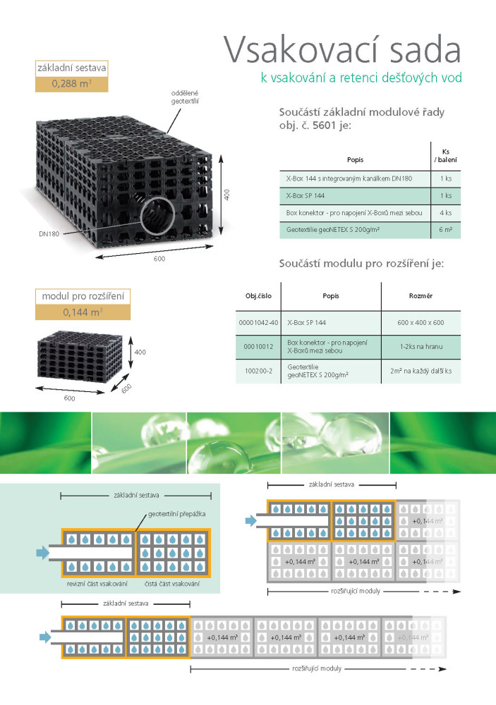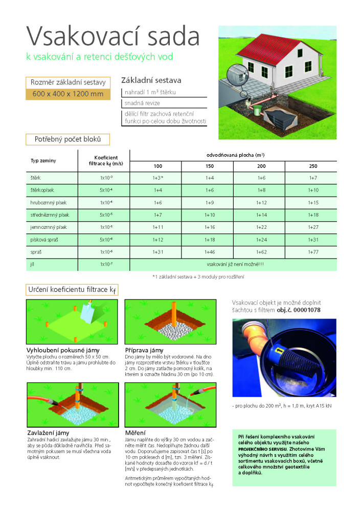 Vsakovací sada k vsakování a retenci dešťových vod