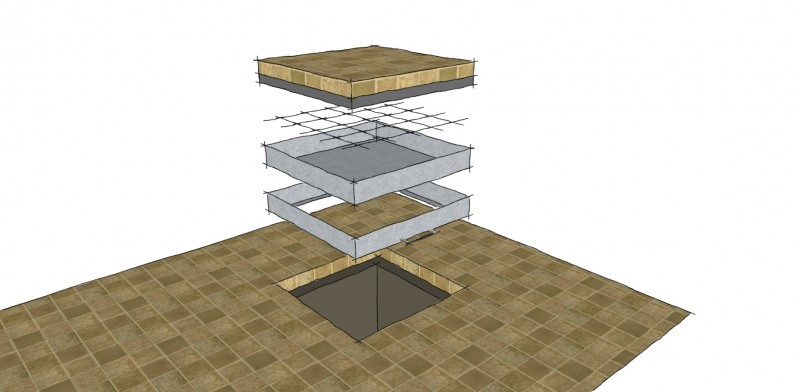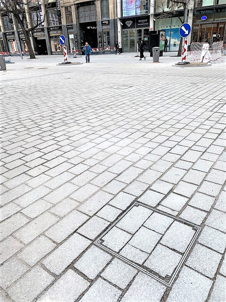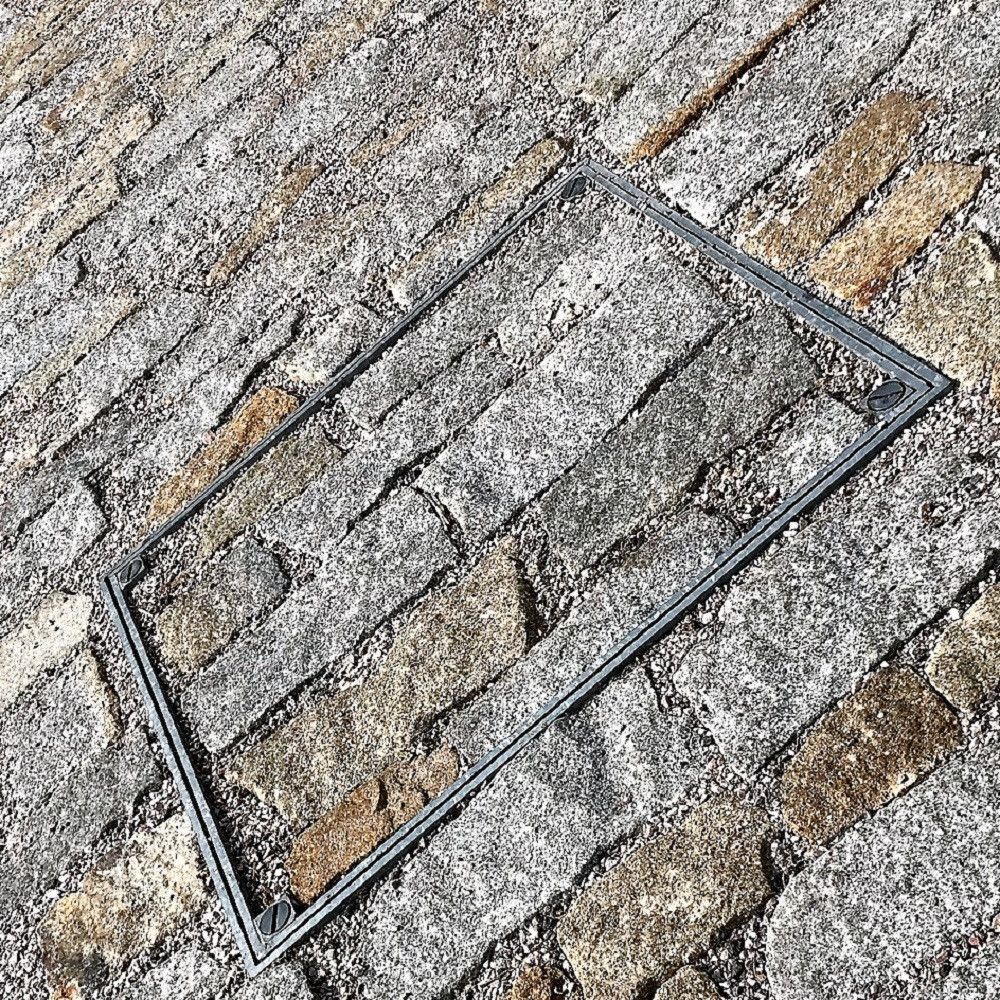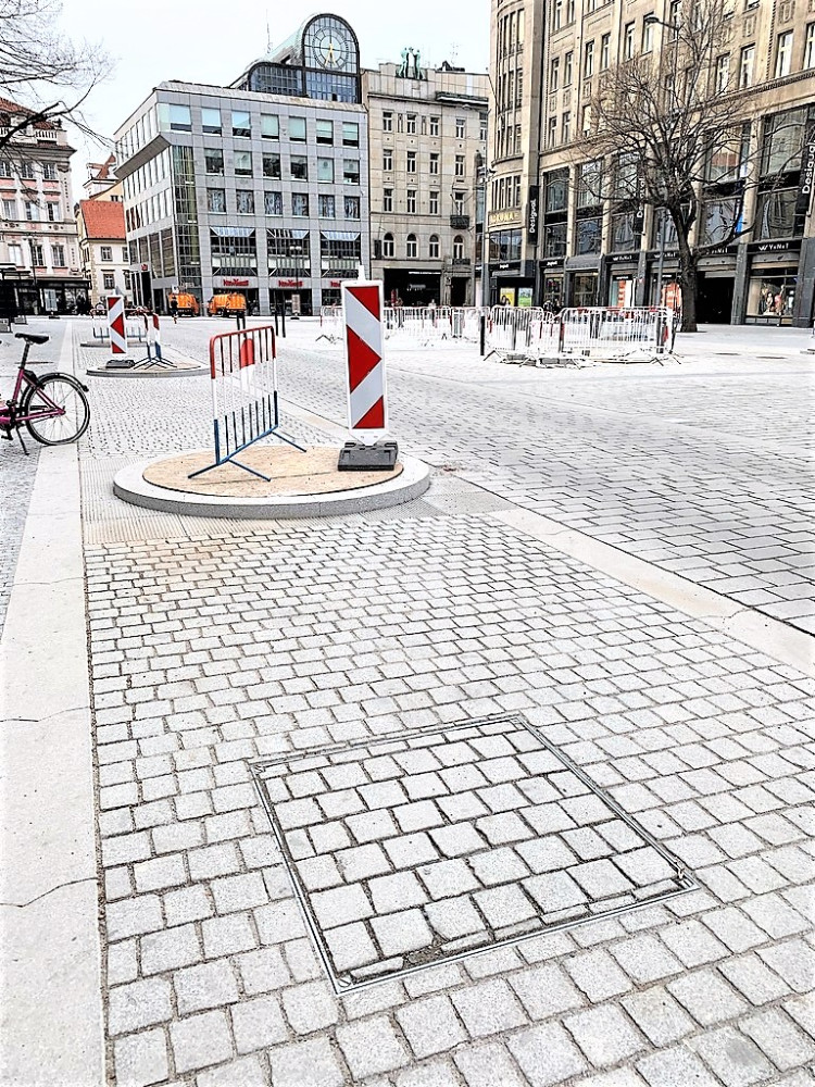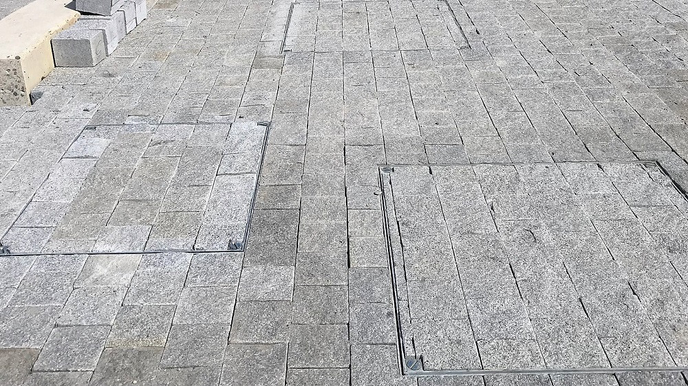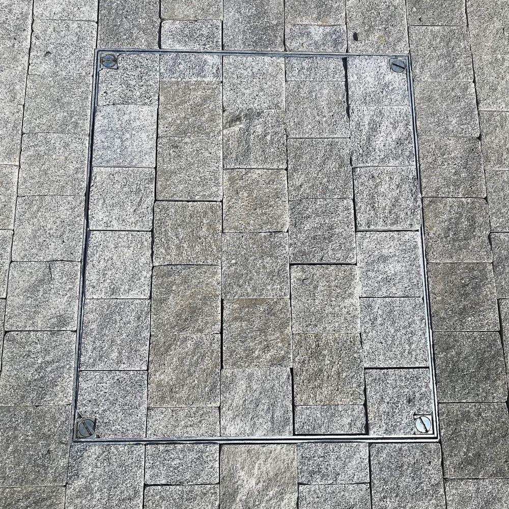 Šachtové poklopy v zadlážděných plochách. Jsou určeny na vyplnění venkovní zámkovou dlažbou.