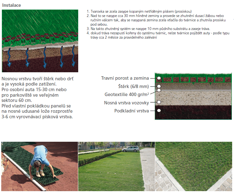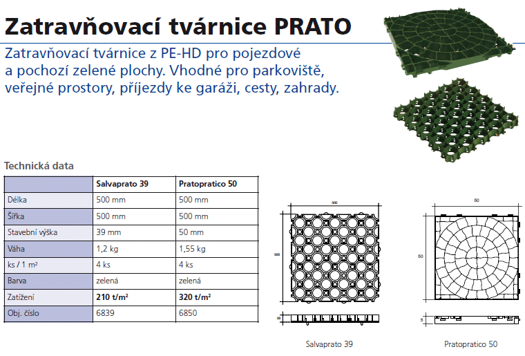 Zatravňovací tvárnice z PE-HD pro pojezdové a pochozí zelené plochy.